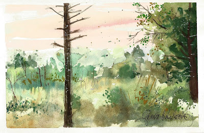 Geraldo Roberto da Silva - "Entardecer em bosque da Furg" - Aquarela sobre Montval
