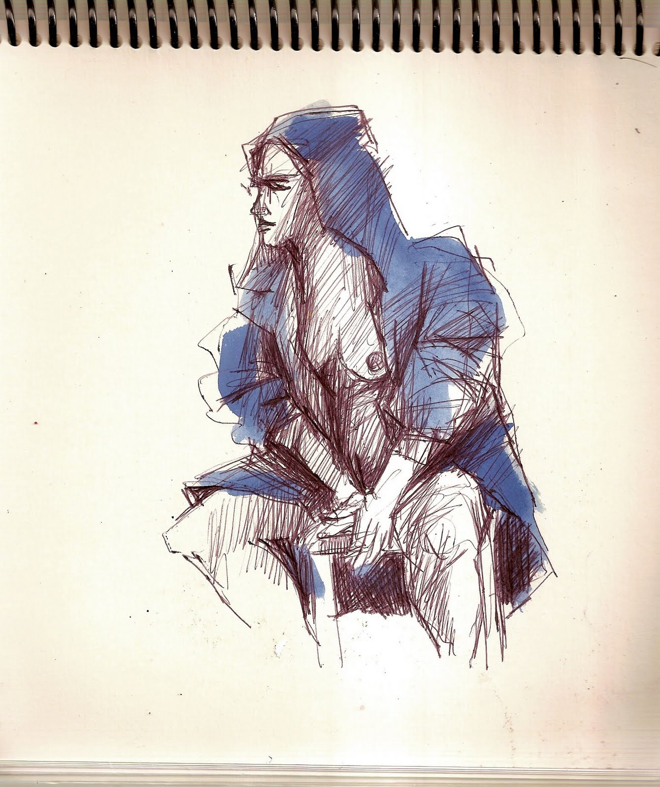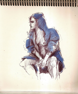 Desenho feito de um homem, no ponto de ônibus- integração (Junção) em Rio Grande. Eu estava no outro lado da rua, portanto os detalhes não devem ser considerados. Peguei apenas a essência da figura e a maneira expressiva que a luz do sol incidia sobre ele. Era frio, muito frio...